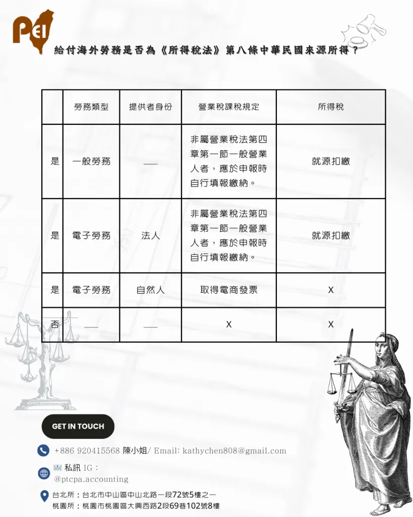 給付海外勞務是否為所得稅法第八條中華民國來源所得?