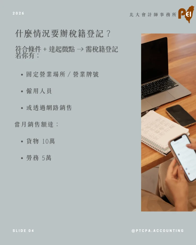 ✅ 需要辦稅籍登記的情況(符合其一 + 達起徵點)